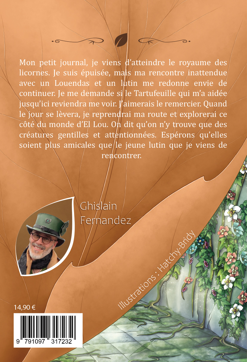 Mon petit journal, je viens d’atteindre le royaume des licornes. Je suis épuisée, mais ma rencontre inattendue avec un Louendas et un lutin me redonne envie de continuer. Je me demande si le Tartufeuille qui m’a aidée jusqu’ici reviendra me voir. J’aimerais le remercier. Quand le jour se lèvera, je reprendrai ma route et explorerai ce côté du monde d’El Lou. On dit qu’on n’y trouve que des créatures gentilles et attentionnées. Espérons qu’elles soient plus amicales que le jeune lutin que je viens de rencontrer.